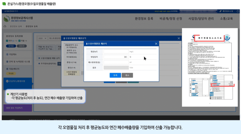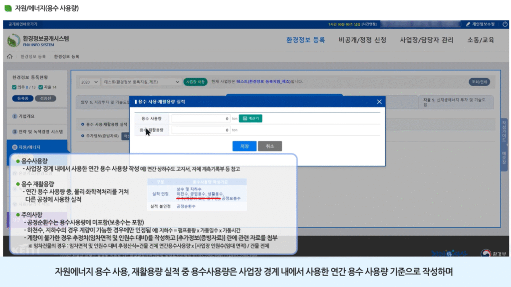 한국환경산업기술원의 교육 영상은 실무자가 직접 환경정보를 입력할 수 있도록