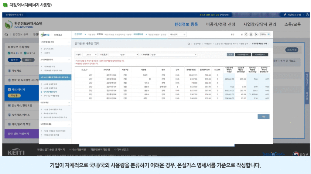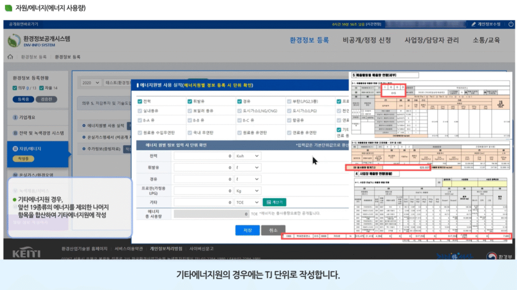 [한국환경산업기술원] 에너지 사용량 기입 가이드