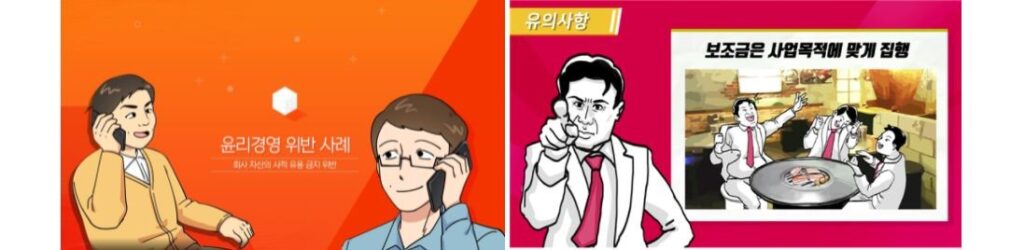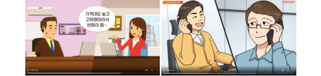 이러닝 콘텐츠 제작유형 중 애니메이션은 캠페인이나 사례교육, 홍보 콘텐츠에 많이 사용되는 제작기법입니다.
