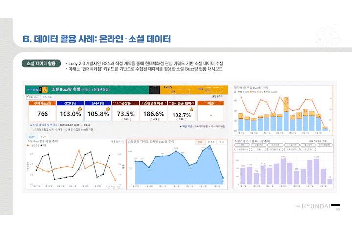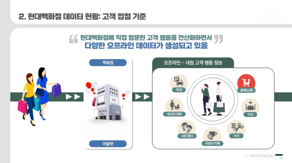 현대백화점은 고객 행동, 시장 변화, 내부 운영 데이터 등을 분석해 맞춤형 서비스와 경쟁력 강화로 이어가고 있습니다.
