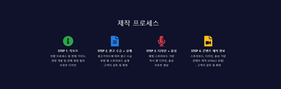 이 유형은 기존 유형의 이러닝 콘텐츠들과는 다르게 유형 특성 상, 타임라인과 별개로 개발범위 협의가 필요합니다.